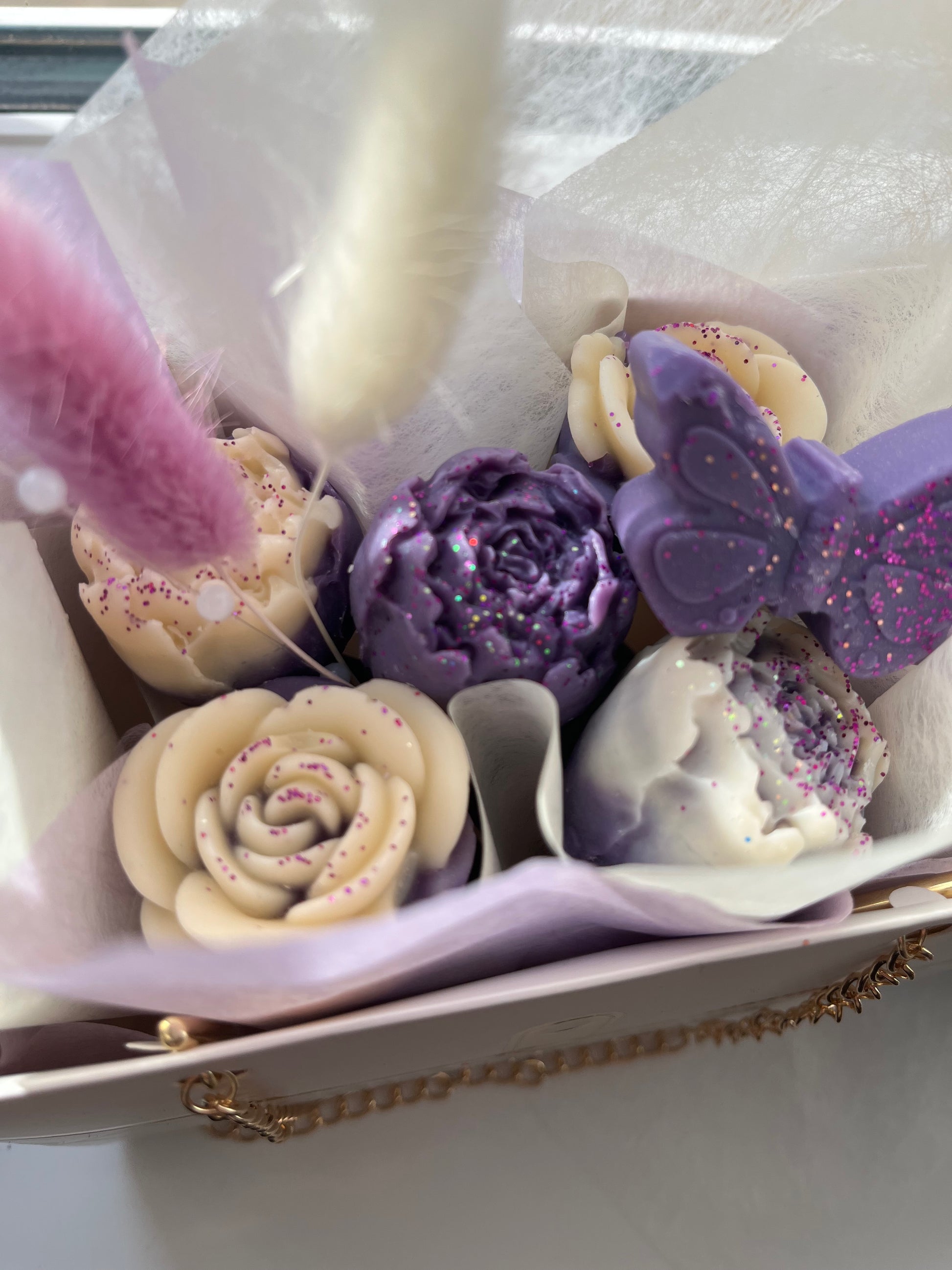flowers & Characters Weighing approximately 15-45g each of scented soy wax melts, this bouquet is a great value for the price. The bouquet is presented beautifully and can be used as a decoration or burned to fill the room with a pleasant aroma. The box size is 9cm, making it easy to store and transport. The bouquet is a perfect gift for any occasion, The bouquet is also a great way to add a touch of elegance to any room.