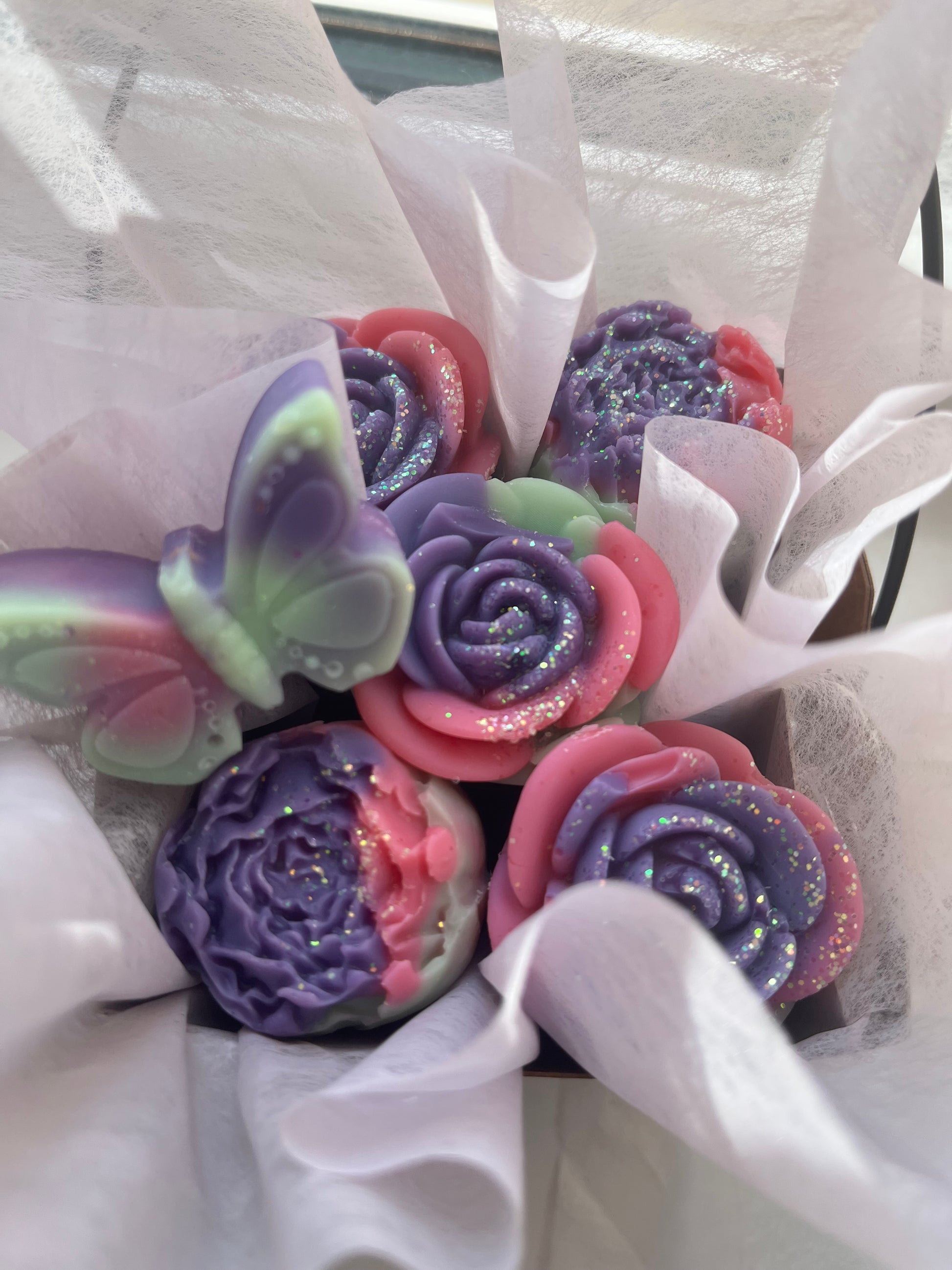 *Kraftywax Bouquets -flowers & Characters Weighing approximately 15-45g each of scented soy wax melts, this bouquet is a great value for the price. The bouquet is presented beautifully and can be used as a decoration or burned to fill the room with a pleasant aroma. The box size is 9cm, making it easy to store and transport. The bouquet is a perfect gift for any occasion. The calming scent of sandalwood and vanilla can help create a relaxing atmosphere, making it a great gift for a loved one or a friend. The bouquet is also a great way to add a touch of elegance to any room.